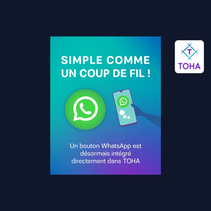 Aujourd’hui, on passe un cap : un bouton WhatsApp est désormais intégré directement dans TOHA, en haut à droite de votre interface.